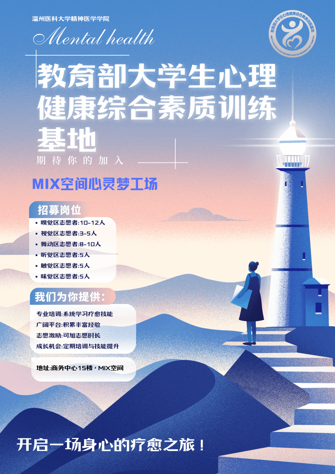 “在生命的河流中, 我们是彼此的摆渡人, 相互扶持,共渡难关, 最终抵达幸福的彼岸。” 嘿,同学们! 厌倦了日复一日的平凡航线? 渴望一场心灵深处的奇妙旅行? 欢迎来到MIX空间——心灵梦工场! 在这里, 你将以色彩绘出梦境, 以肢体绽放心扉, 以双手唤醒情绪, 以实践获得快乐, 以五感分泌多巴胺!