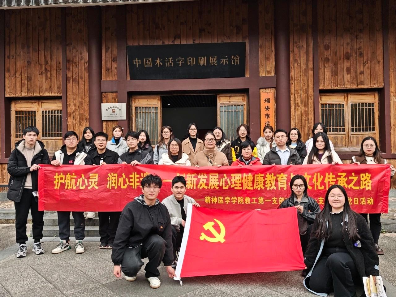 共抒感悟 通过心理健康教育和非遗文化传承的结合,党员师生们在心灵和文化上都得到了深刻的滋养,纷纷表示关注中小学生心理健康发展意义重大,同时也更加坚定了传承和发扬传统文化的决心,让这些宝贵的文化遗产在新时代焕发出新的生命力。 教师第一党支部 钱君 此次活动将心理志愿服务与非遗研学双轨并行,深刻践行了“实践育人”和“文化育人”理念。心理志愿服务让大学生学以致用,帮助青少年化解成长烦恼与焦虑,木活字印刷体验让师生们在指尖触摸历史中沉淀专注力,二者交融印证了习近平文化思想中“以文润心”的深层逻辑。这种传统技艺与现代心理学的创造性转化,既能为山区青少年筑起心理健康屏障,也构建起传统文化浸润下的思政教育新场景,实现文化传承与价值引领的同频共振,是非常好的一种融合尝试。 教师第一党支部 汤巨霞 在今日党日活动走访瑞安高楼学区时,发现青少年普遍存在心理问题,手机成瘾现象尤为严重。这凸显了加强青少年心理健康教育的重要性。习近平总书记强调未成年人身心健康至关重要,而非物质文化遗产正是滋养心灵的优质载体。下午参观活字印刷非遗项目时,我们深切体会到这项传统技艺承载的民族智慧与精神内核——通过动手实践既能培养专注力与耐心,又能帮助青少年远离电子产品沉迷。建议将非遗传承纳入心理教育体系,以篆刻、造纸等活动为载体,让年轻一代在触摸历史文化中涵养心性,实现文化传承与身心成长的双重价值。 学生第一党支部党员李宝瑞 习近平总书记强调,要扎实做好非物质文化遗产的系统性保护,满足人民精神文化需求,推进文化自信自强。这次活动让我深刻理解非遗文化保护和传承的重要性,也让我看到非遗文化在当代社会焕发出的新活力。在今后工作中,我将深入学习贯彻总书记重要指示精神,积极参与非遗文化保护,推动中华文化走向世界。同时,我也会更加关注青少年成长,努力提升专业能力,为青少年心理健康发展贡献力量。 学生第一党支部党员祝乐媛 习近平文化思想强调了文化自信和文化传承的重要性。非物质文化遗产是民族文化的重要组成部分,是连接过去和未来的桥梁。通过这样的体验和交流,我们不仅能够学习和了解传统文化,还能够激发对传统文化的兴趣和热爱,从而促进非物质文化遗产的传承和发展。在现代社会,我们应该更加重视非物质文化遗产的保护和传承。通过教育、展览、体验等多种方式,让更多人了解和参与到非物质文化遗产的保护中来。同时,我们也应该探索将传统技艺与现代技术相结合的新途径,让传统文化在现代社会中焕发新的活力。
