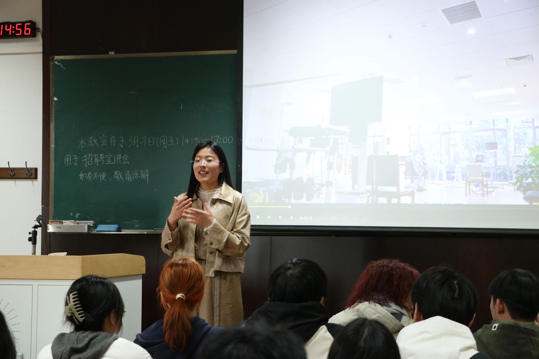 三月春风暖,万物竞芳华。3月21日下午,我院就业指导中心邀请泰康之家·瓯园市场部在7B116教室开展了校园招聘宣讲会。本次宣讲会由偷拍视频 学工办徐景老师主持,2021级和2022级应用心理学专业学生参加了本次招聘宣讲会。