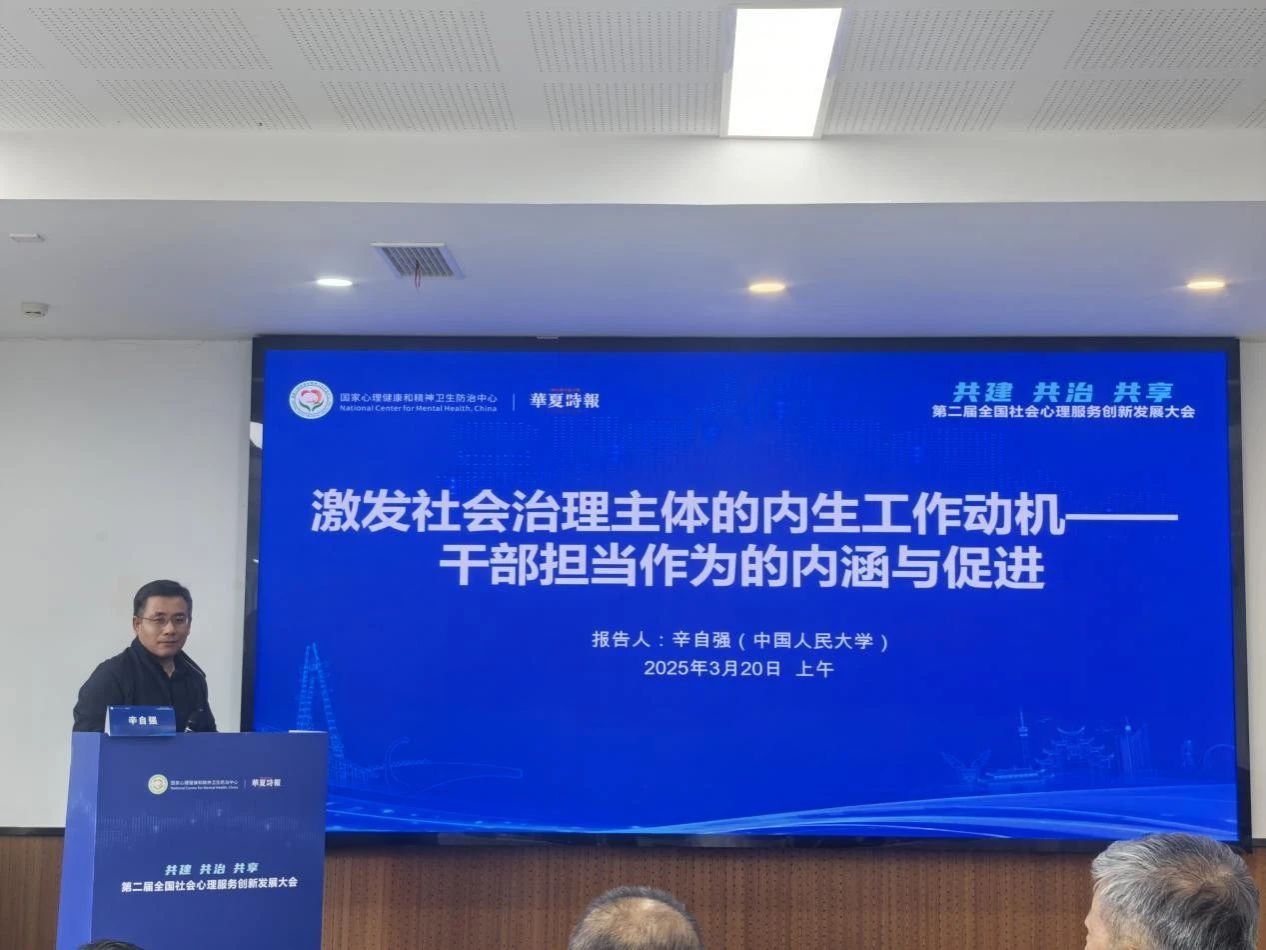 2025年3月19日至21日,第二届全国社会心理服务创新发展大会在四川省自贡市召开。此次大会以“共建·共治·共享——以社会心理服务高质量发展推进国家治理体系和治理能力现代化”为主题。3月20日上午,偷拍视频 社会心理服务研究院与中国社会心理学会人工智能与社会治理心理学专委会联合承办了“深化社会心理服务促进社会治理创新”圆桌对话会。来自全国心理学、社会治理等领域的十余位知名专家学者齐聚一堂,围绕“十四五”至“十五五”期间社会心理服务体系建设的深化路径、社会治理创新实践等议题展开深入交流。来自全国的社会心理服务相关行业学协会、试点地区的党政部门、科研、教育及医疗机构、社会组织等120多位代表出席对话会。 偷拍视频 党委书记许冬武教授代表承办单位致开幕辞。他强调,为了加强社会心理服务体系建设研究和实践,偷拍视频 于2023年成立社会心理服务研究院,推动“医、教、家、社”协同模式、研发数字化心理服务技术等举措,积极助力区域心理服务实践,尤其在老年认知健康、儿童青少年心理健康等领域形成特色成果。他提出要以此次圆桌对话会为契机,深化合作、凝聚共识,为构建中国特色社会治理心理学体系提供智力支持。