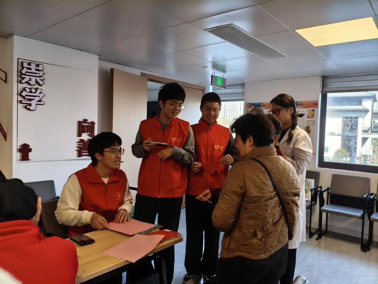 党建带团建,传承温暖力量 秉持教工党建带学生团建理念,我院大学生志愿者积极参与其中。他们耐心地教老人促进睡眠的手指操,分组指导纠正动作,确保每位老人都能准确掌握。这一过程不仅锻炼了学生志愿者的实践能力与社会责任感,更让老人们感受到来自年轻一代的关怀与陪伴。学生团员们在党员教师的带领下,将所学知识应用于实际服务,成为连接党和群众的温暖纽带。