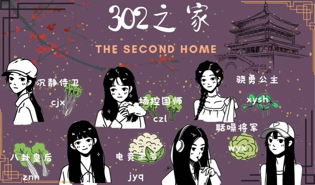 二等奖 来自3#302寝室 10#6151寝室 16#616寝室 古风画作,别具心意,六位不同个性的成员组成共同的302之家!