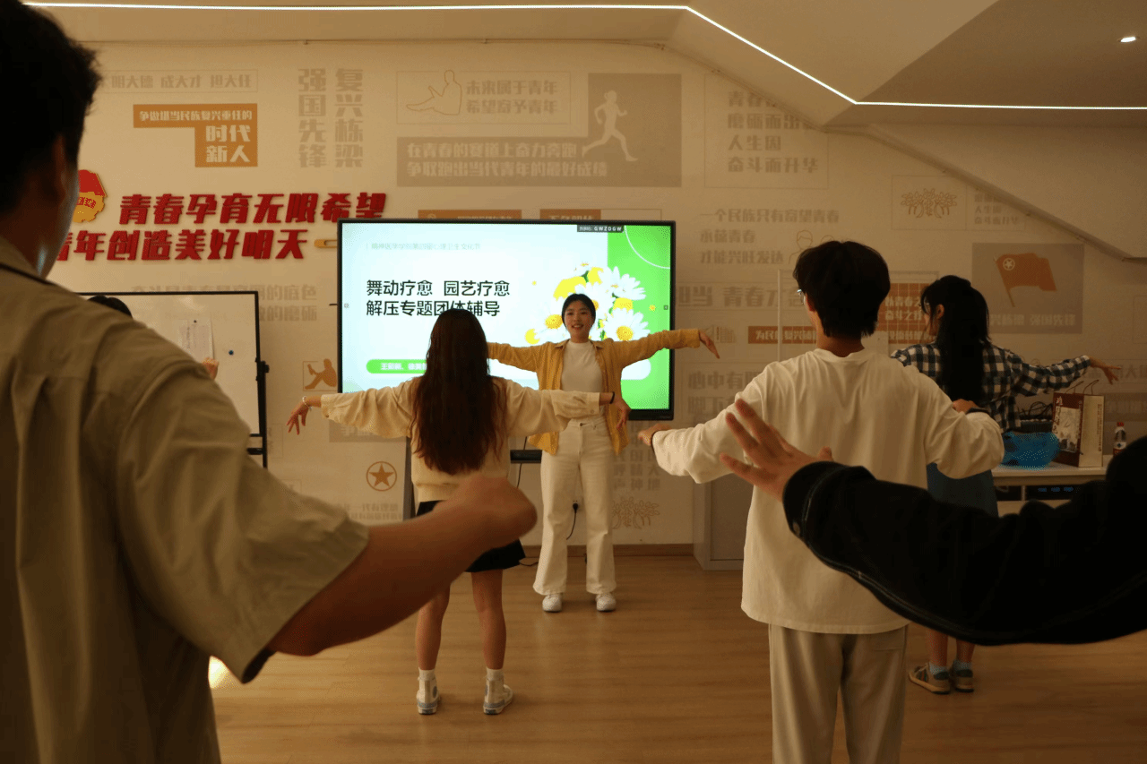 为充实与丰富课余生活,减轻同学们的心理压力,共同发现生活和生命的美好,偷拍视频 于5月14日下午在学生活动中心团学驿站开展了“舞动疗愈,园艺疗愈”解压专题团体辅导活动,本次团体心理辅导活动由学工办王茹新老师、徐景老师带领。 团辅开始,在徐景老师的带领下,首先进行了舞蹈热身。同学们伴着欢快的音乐活动身体、舒展筋骨,与周边同学说说笑笑,随着身体的舞动,享受在轻松愉快的氛围之中。