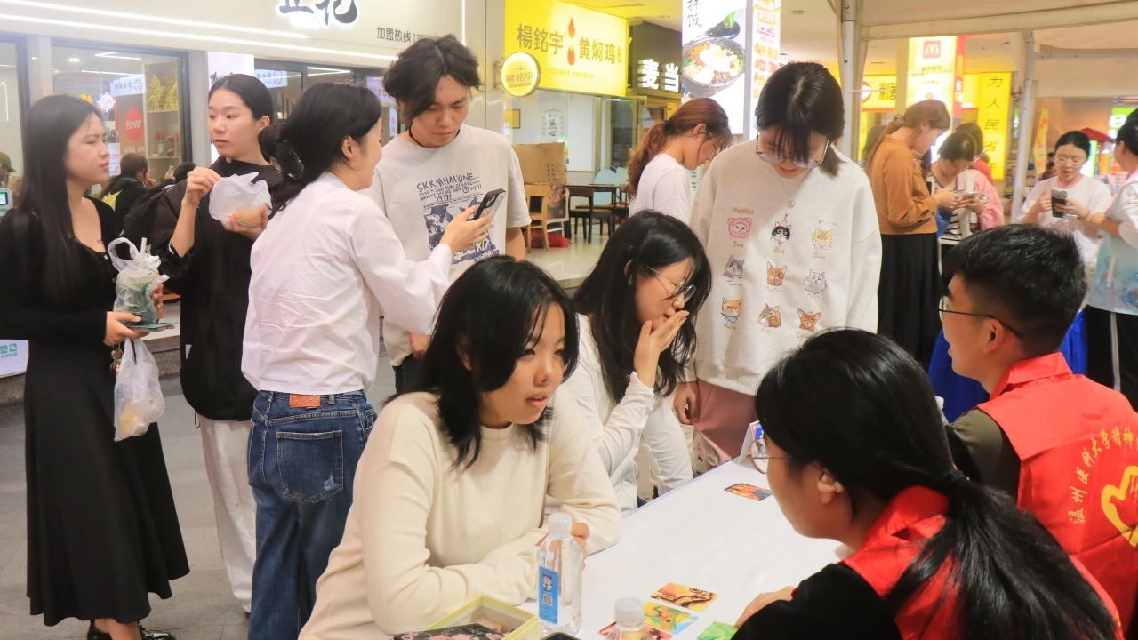 看一朵花开、等一阵风来,生活能治愈的是愿意自愈的人。温州市第七人民医院在活动现场开展了包括心理测试、心理咨询、穴位调控等一系列活动,多名参与者在心理咨询中流下热泪,诉说心声,志愿者们认真倾听参与者的倾诉并通过专业知识进行心理调节,最后送上小奖品网红动物“卡皮巴拉”盲盒,向大家传递了减少内耗的理念。疾控中心积极分发宣传册,助力精神卫生知识传播。
