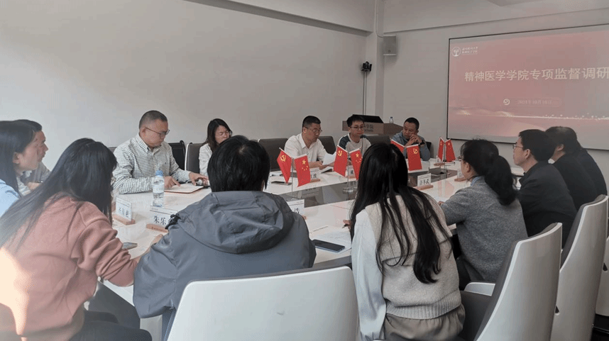 10月10日上午,校党委委员、纪委书记章红波,校纪委副书记、纪检监察室主任戴向龙,科技处副处长李星熠深入学院开展专项调研工作,学院许冬武书记、涂艳玲副书记、吴伊丽副院长及浙江省阿尔茨海默重点实验室管理人员等参加调研交流会。