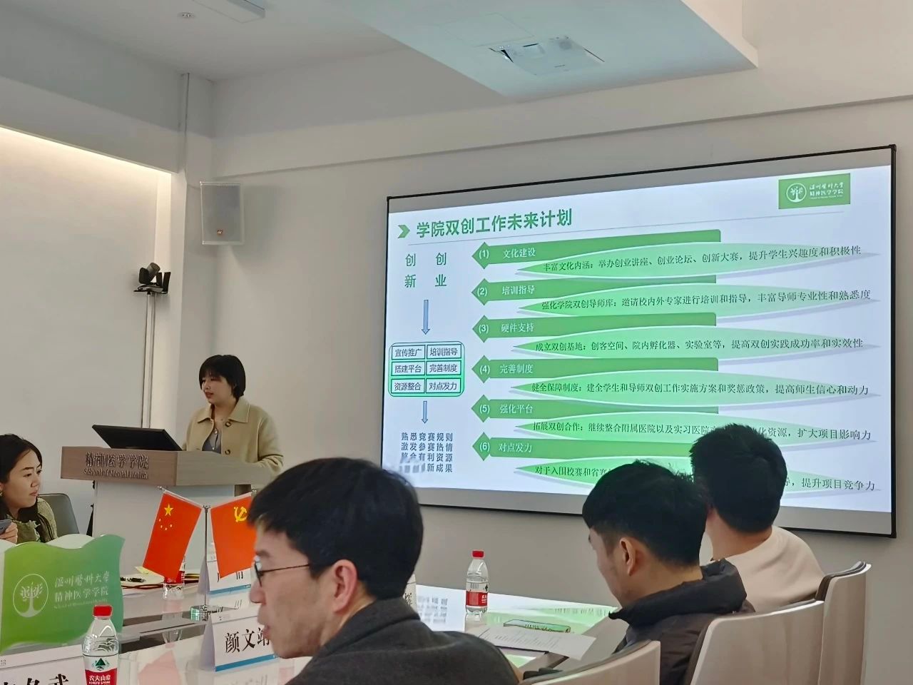 会上,学工办副主任王茹新介绍了学院创新创业工作开展情况、学院在创新创业工作方面取得的成绩以及接下来的工作计划。