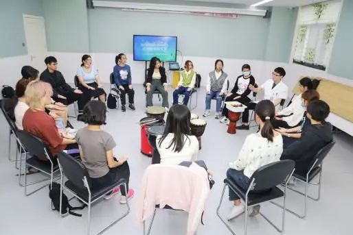 在青少年日间中心,同学们参与到心理科普课堂当中,在医生们的讲解和介绍下学习如何科学解压、如何拥有良好睡眠,也掌握了人际关系与沟通技巧,可谓是收获满满。学习理论知识之后,同学们也迫不及待地亲身体会了心理项目。在击打乐器的共振中,同学们体会到了音乐治疗的魅力;绘画治疗的缤纷色彩也为同学们带来了心理投射于艺术创作的奇妙体验;在医师的指导下,同学们体验正念治疗,在练习中释放压力。