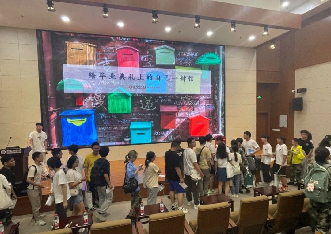 2023级新生始业教育还安排了学籍管理教育、宗教政策、防诈骗安全教育以及实验室安全教育的课程。通过此次始业教育,增强了学生爱校、爱院意识,了解到了学院人才培养模式的特点和要求、增强了职业生涯规划意识,为新生开启了美好的大学生涯。最后,同学们投递了“给毕业典礼上的自己一封信”。同学们意气风发,把对大学生活的美好期待写进信封,满怀信心地投进了未来信箱里,等待学成归来的自己再次启封!