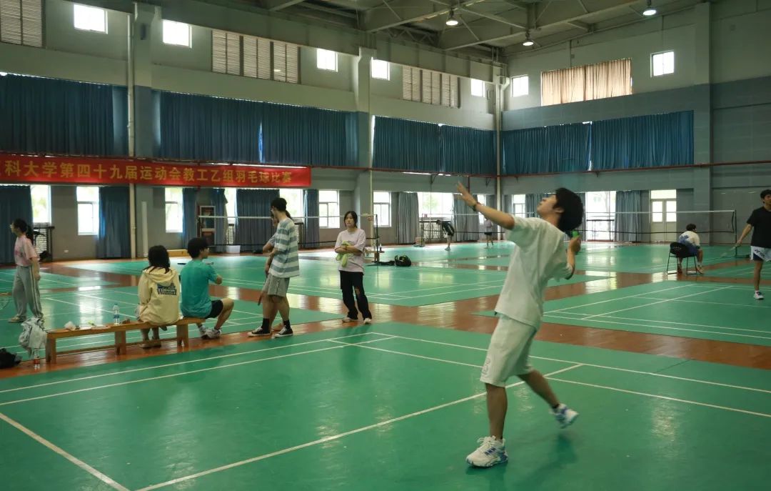 换掉常服,穿上羽毛球运动装,老师们一改日常的风格,以顽强拼搏的状态为学生们树立了榜样。讲台上是老师,运动场上是对手,同学们毫不留情,与师生组斗智斗勇。羽毛球运动是一项较高强度的运动,但运动员都是全力以赴,展示了高水平的羽毛球技术,当然这也离不开学生会同学场下的后勤补给。