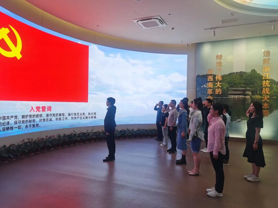 随后,在场全体党员在党旗前进行庄严宣誓。