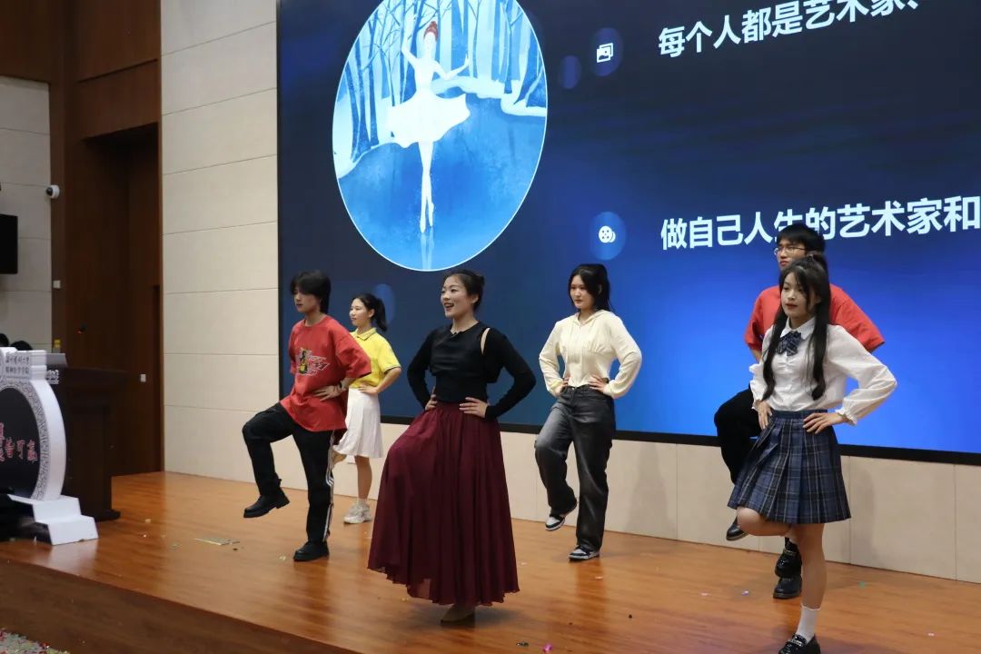 用肢体开启心理疗愈之旅;能说话就能唱歌,能走路就能跳舞;每个人都是艺术家,每个人都是治疗师;要做自己人生的艺术家和治疗师。最后,在徐老师的带领下,会场全体师生起立,随着音乐共同舞动,体验舞动治疗给个体带来的积极作用。本场活动向大家展示了舞动治疗的魅力,体验到舞动治疗对增强自信心、幸福感和社会支持力的强大动能。