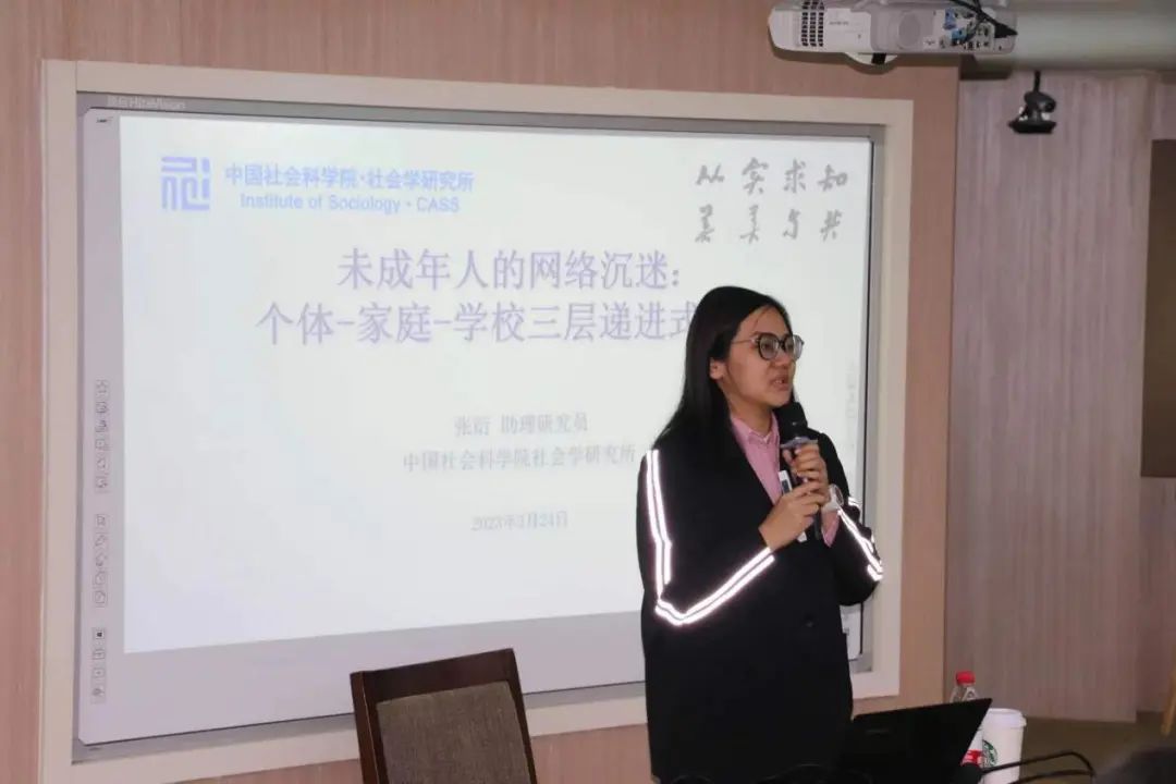 中国社会科学院社会学研究所的张衍教授以“未成年人的网络沉迷:个体-家庭-学校三层递进式为主题,谭旭运教授以“社会心态范式下的获得感研究”为主题开展讲座,为参会同学们讲解了他们在社会学研究领域的相关方法,分享了研究经验与成果。