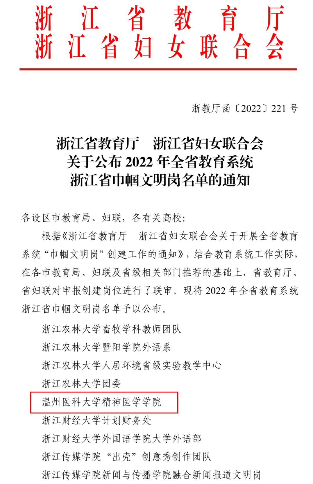 根据浙江省教育厅、浙江省妇女联合会《关于开展全省教育系统“巾帼文明岗”创建工作的通知》,经基层申报,设区市、省级相关部门推荐及省教育厅、省妇联联审,偷拍视频 被确定为2022年全省教育系统浙江省巾帼文明岗。