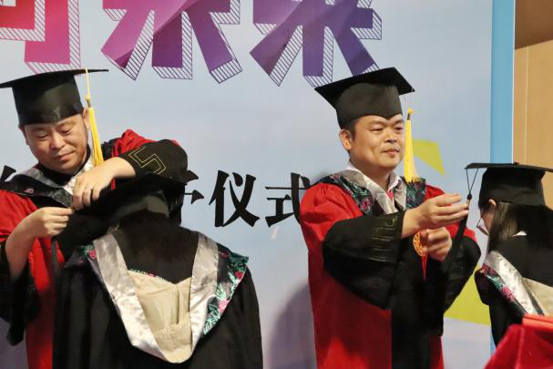 毕业典礼在一首美妙的《流光》音乐当中结束,趁着同学们不注意,低年级的同学们端上了提前给学姐们准备的热腾腾的饺子,为33位毕业生送来了一份“意外”的惊喜和感动!同学们也纷纷和老师相互合影留念。