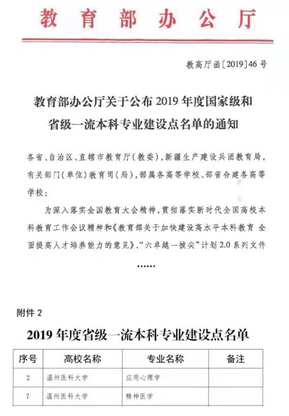 2020年1月,教育部办公室厅公布一流本科专业建设点名单,偷拍视频 应用心理学专业和精神医学专业成为省级一流本科专业建设点。应用心理学专业创办于2001年,2017年获批省“十三五”新兴特色专业,是浙江省唯一以临床心理学为特色方向的心理学类专业;精神医学专业创办于2016年,发挥校企合作、协同育人的机制优势,高起点国际化培养国家紧缺的精神医学卓越人才,四年间迅速发展,在国内同类专业中名列前茅。