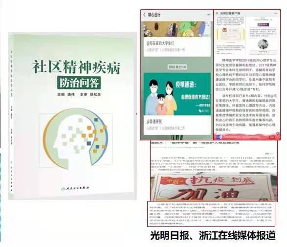 上半年疫情期间,学院师生联动,共同打响心理战“疫”。偷拍视频 精神医学系第三临床精神病学教研室唐伟主任、刘志宏主任赴武汉一线进行心理危机干预,获政府嘉奖;心理系老师利用线上平台提供心理援助热线服务、远程健康问诊服务和心理干预服务,为温州市民、海外华侨和医护人员的心理保驾护航;学工办组织学生推送心理科普知识,开展“疫伴课堂”心灵陪护志愿活动,绘画心理辅导、分享生活趣事、聆听减压音乐等多种方式,为医护人员子女、海外华侨等提供线上心理辅导。