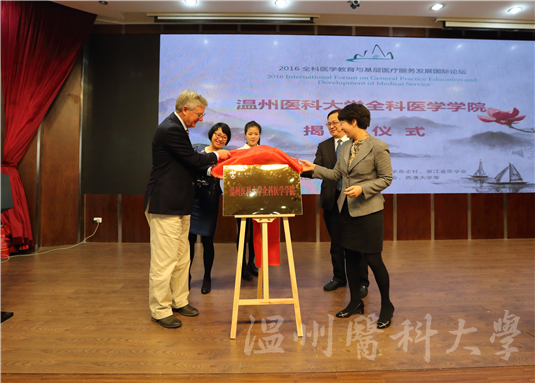 我校于2010年开始在省内率先开展本科层次订单式农村基层卫生人才(全科医学)培养试点,目前招生范围已覆盖浙江省全部县(市、区),在校生人数已达1900多。此次揭牌的全科医学学院在全省尚属首家,主要负责基层卫生人才(全科医学)定向培养学生的教育与管理、全科医学学科的专业建设和科学研究、基层社区实践基地的建设与管理、全科医生的教育培训与继续教育、全科医学的国际合作与交流等工作。