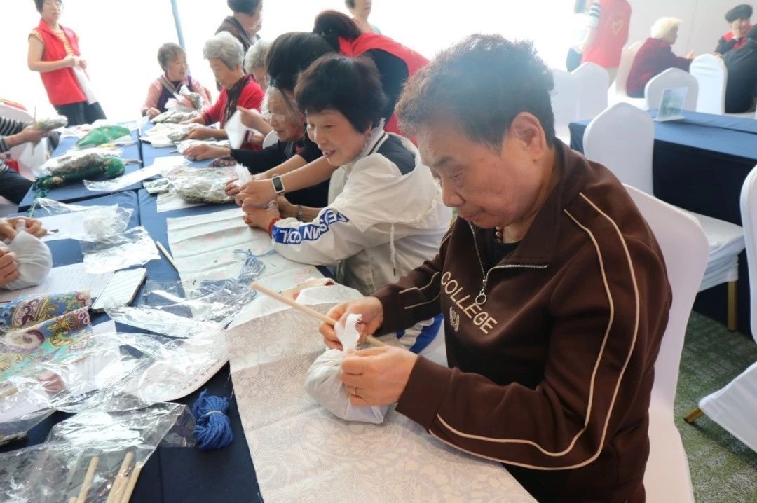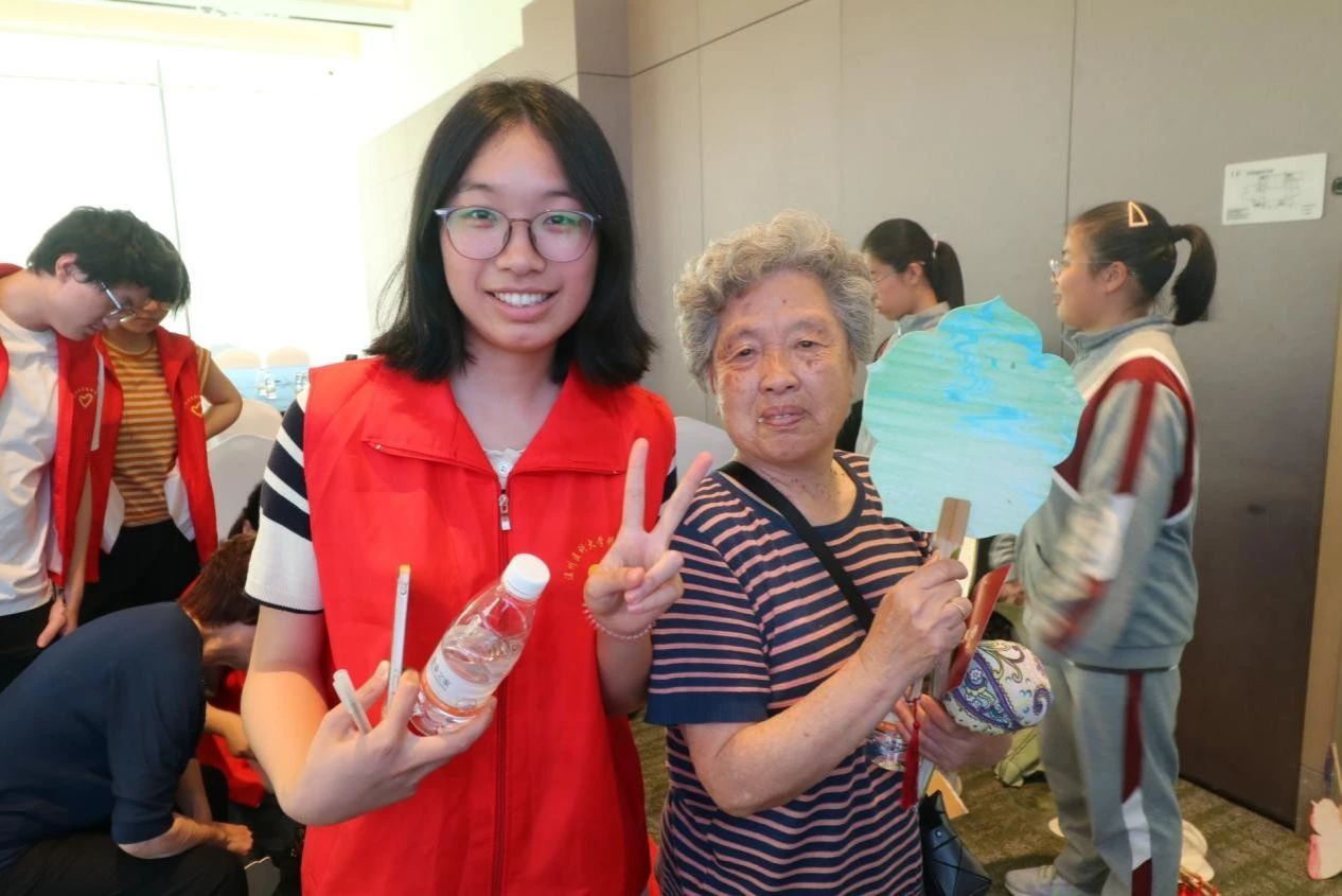 讲座结束后,师生志愿者精心设置了心理主题游园会,游园会包括老年心理知识竞答、古法艾草锤制作、非遗漆扇绘制、益智手指操训练和VR心灵绿洲体验等环节,通过寓教于乐方式强化老年人的心理健康意识和管理技能。在传统工艺体验区,老人们在志愿者指导下完成手工艺品制作;在VR体验区,老人们沉浸式体验了一款融合艺术治疗理念和大自然风景旅游的虚拟现实场景;在教学区,老人们跟随志愿者学会了10个益于手脑协调和改善大脑认知的手指操工作,促进老年群体身心协调发展。