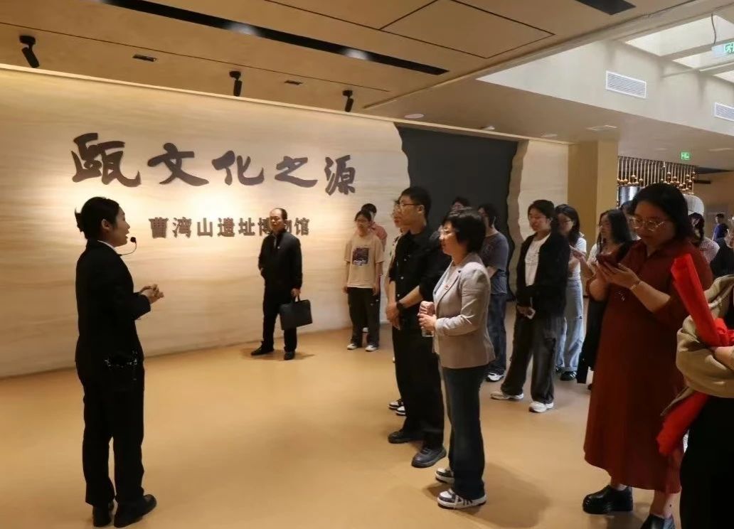下午,师生党员赴曹湾山遗址博物馆开展文化溯源研学活动,系统参观“温润之地”“考古挖掘”“山海之民”“文化之融”“古今之韵”等五大主题展厅。通过瓯越文化玉器纹饰、考古探方剖面等珍贵文物,深入探究瓯越文明发展脉络与文化交融特征,强化文化传承使命意识。