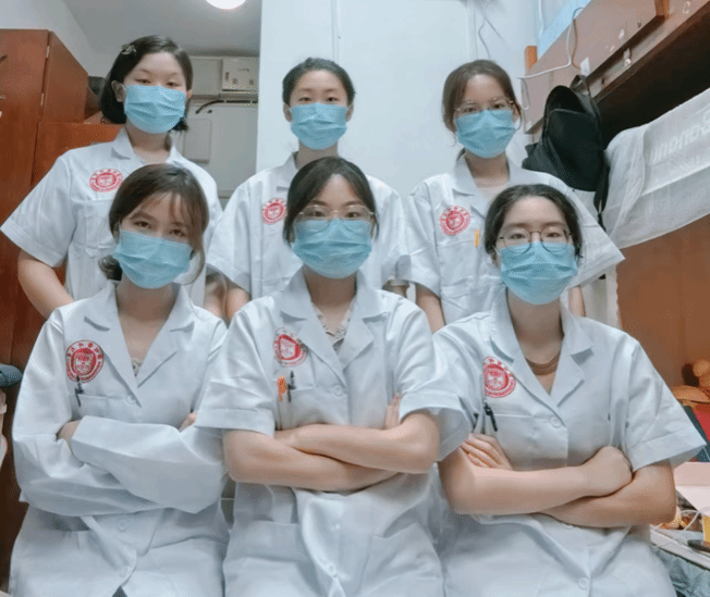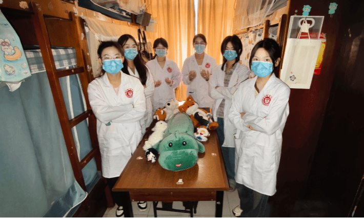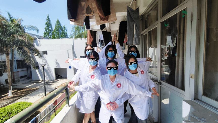 5#203:专业的着装和行为与日常的场景和姿势碰撞,展现医学生的想象力与解压方式,传递青春版的医学浪漫。