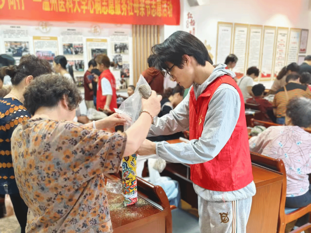 在丹田环放松活动后,我院志愿者们为在场的老人们准备了丰富的艾草中式颈枕制作材料。在志愿者的耐心指导和帮助下,老人们亲手制作属于自己的颈枕。活动中,志愿者们积极协助老人们完成作品,并送上真挚的祝福。这一活动不仅能够提升老人的手眼协调能力,还能通过制作艾草颈枕作品来改善睡眠和健康状态,让老人们享受与同伴交流互动的乐趣。
