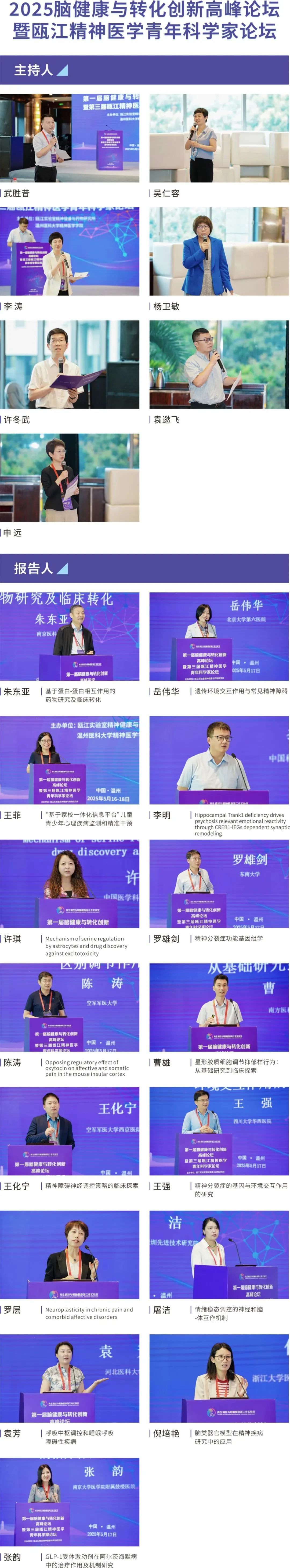 近日,由瓯江实验室精神健康与药物研究所与偷拍视频 联合主办的“第一届脑健康与转化创新高峰论坛暨第三届瓯江精神医学青年科学家论坛”在浙江温州顺利召开。 来自全国神经科学、精神医学及药物研发等领域的知名专家、青年学者与临床骨干齐聚一堂,围绕“解码脑科学前沿,践行转化医学使命”主题,深入探讨精神疾病防治的创新路径与脑健康研究的未来方向。